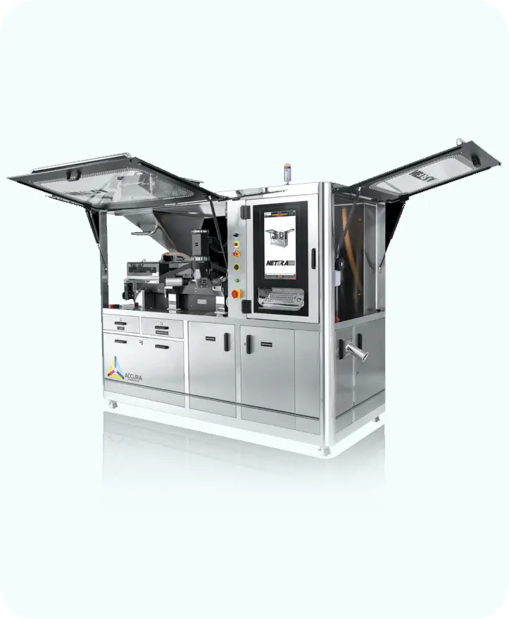 The NETRA VS6 is a state-of-the-art automatic inspection system engineered to deliver precise and reliable rejection of defective tablets and capsules. With advanced technology and robust design, it provides continuous 360° product inspection at high speeds, ensuring only flawless products move forward in the manufacturing process. Compact and operator-friendly, the NETRA VS6 minimizes human error while boosting efficiency and compliance. Built for pharma companies seeking uncompromising quality control, it combines cutting-edge performance with long-term durability.